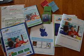 I began to read the Guide for Teachers and Parents. From there, the kids started lesson 1. Nearly every lesson begins with children watching a segment from the video. Then they use the flashcards and/or the workbook to follow up the video.